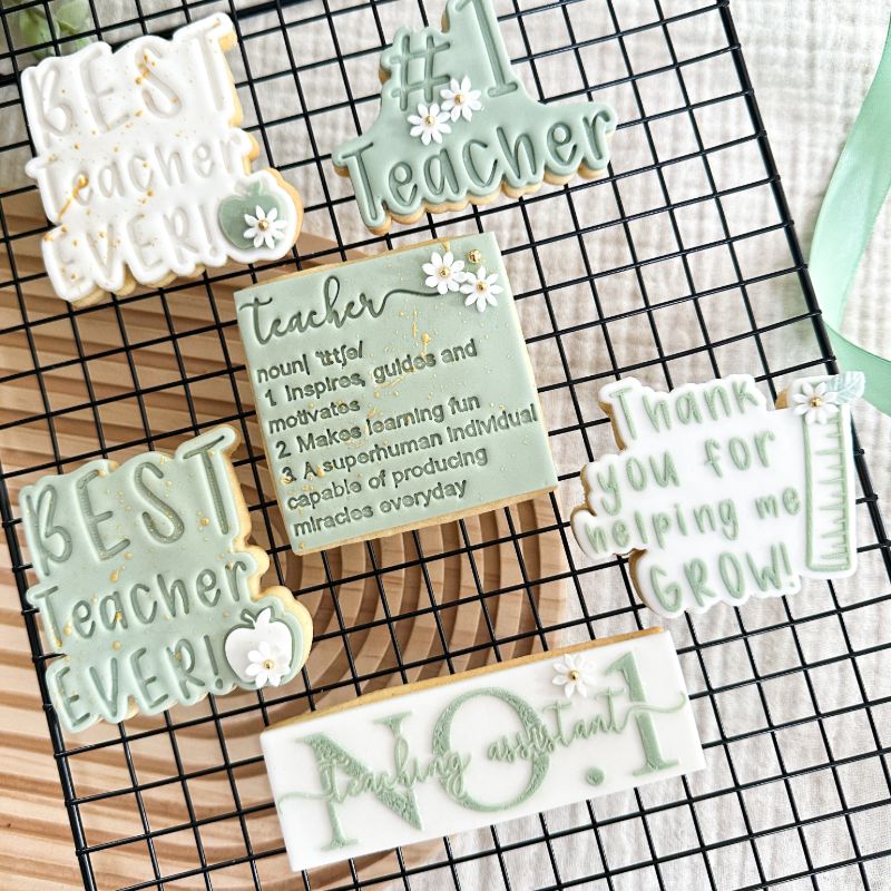 This 'Teacher Definition' Teacher Cookie Cutter and Stamp can be used to create beautiful and repeatable messages for your cookies as well as matching shaped cookies.